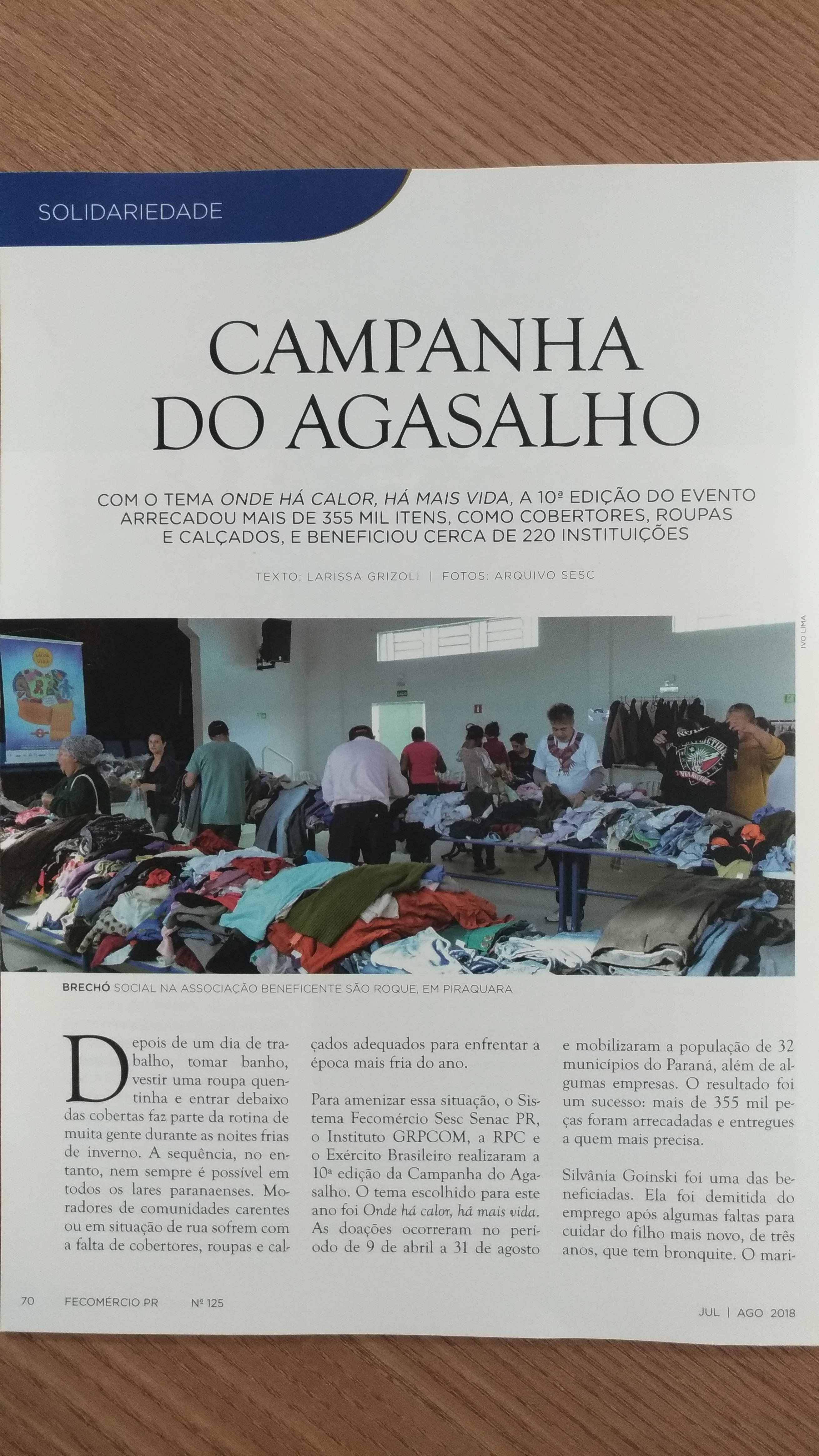 Nossa coleta compreendeu o período de 28/05 a 29/06/2018, totalizando 6.105 peças de agasalhos doados; sendo recorde de volume em arrecadação.
